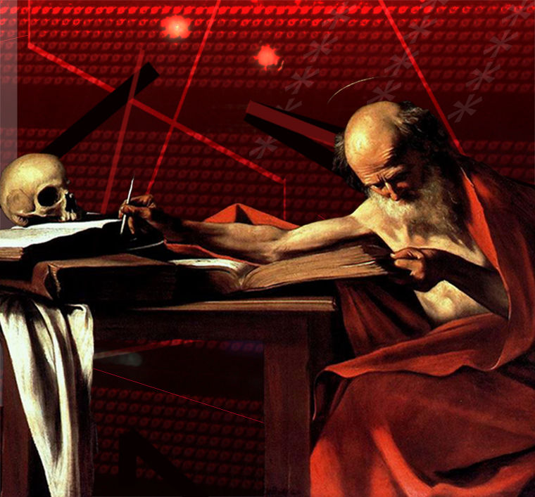 Design 'tryout'. My take on "Saint Jerome Writing' by old master Caravaggio.